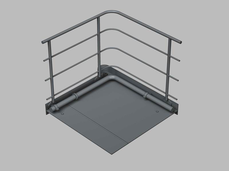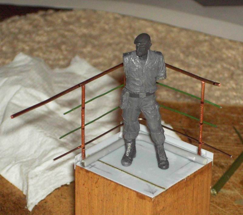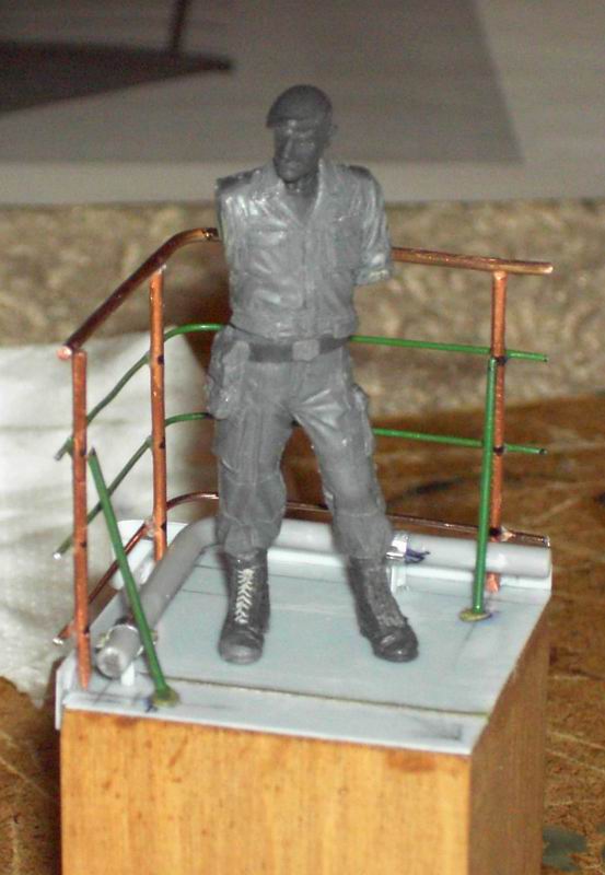 Подверился по размерам с нормативными документами, взял листик, расчертил, приложил фигурку... И от большого желания сделать спасательный круг ничего не осталось. Он будет лишним и только затенит все. Также решил леерное ограждение повернуть за спину, а не как на оригенале. Так лучше. А потом решил прикунуть в трехмерке, как оно, вроде не чё!