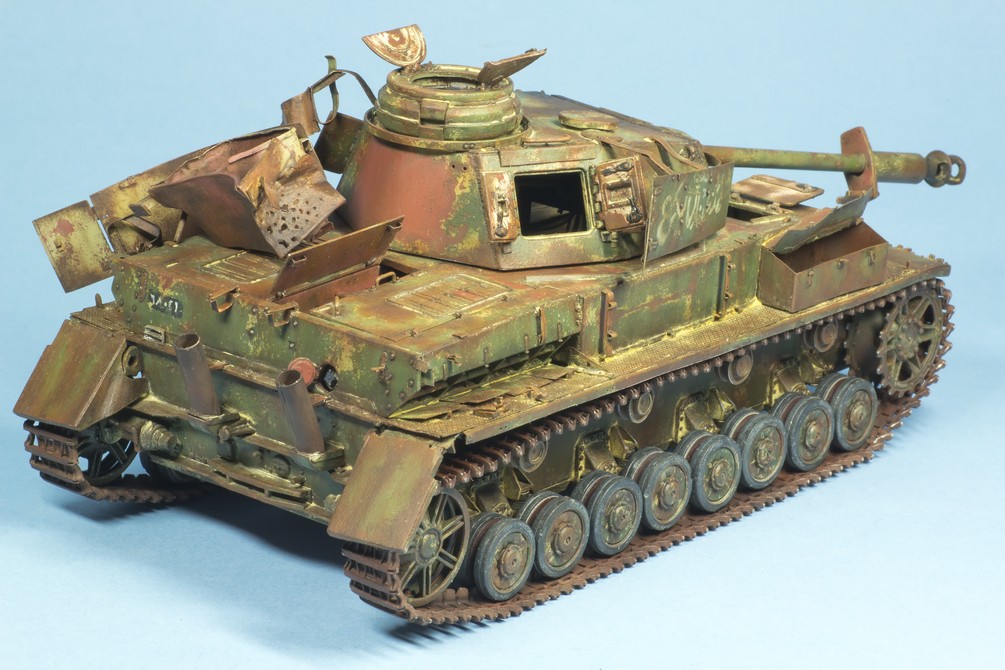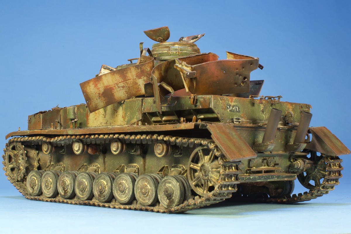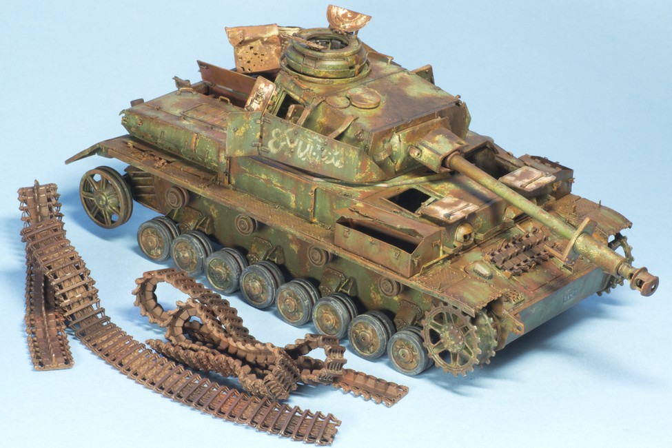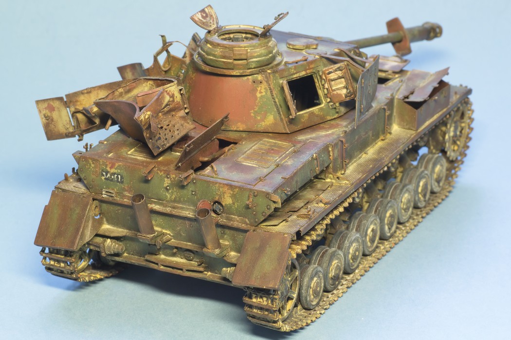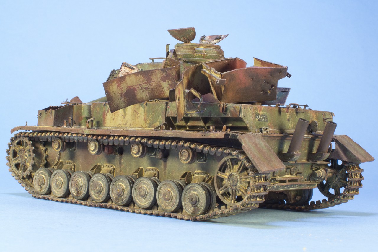 По крупному, закончил "ржавление" корпуса и башни. Использовались масла и жидкости от MIG и AK. пространство под полками дополнительно затемнил тамиевским Smoke.