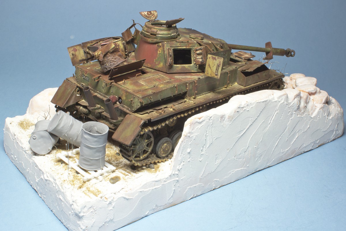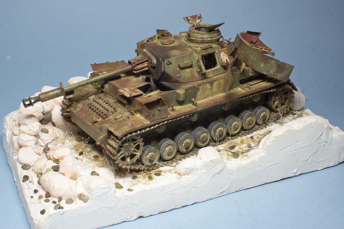 Доброй ночи,Андрей! Молодец, что начал делать основание. С интересом буду следить за продолжением работы. Пока работа с основанием не зашла слишком далеко, попробую дать пару советов. Во-первых, нужно определиться с лицевой стороной диорамы - это та точка, с которой танк смотрится интереснее всего и с этой стороны будет название работы. Соответственно и основание под раму нужно обрезать так, чтобы углы не смотрели на зрителя(я так понимаю рама будет не круглая, а прямоугольная