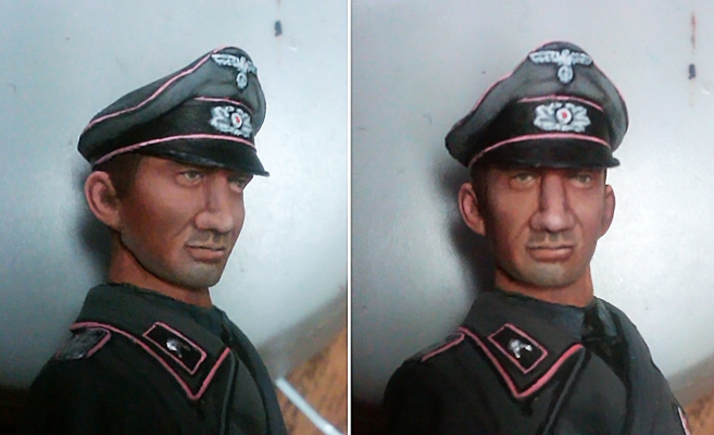 Константин, благодарю! кант на месте,вот головы другой нету к сожалению,думаю смысла возиться особого нету,начал перекрывать фрица все же заново, "желтые" затертости лишние,кабуру тоже думаю в коричневый перевести.