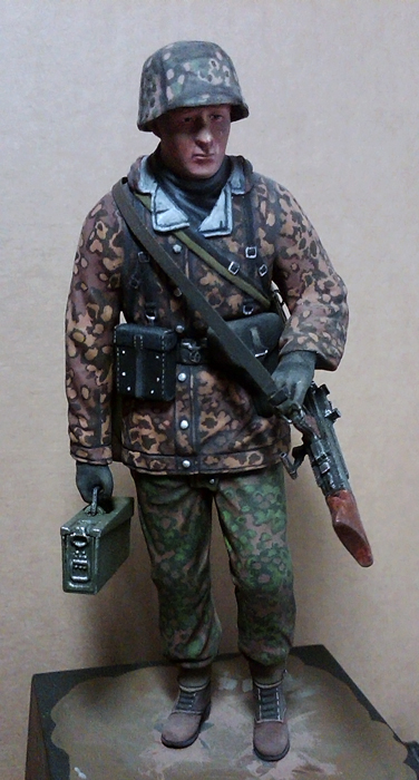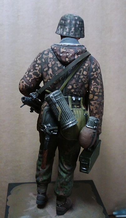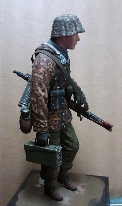 На штанах и на шлеме камо явно лучше удался, чем на блузе. И ремень точно надо переделать, MG - тяжелая машина, а ремень колом стоит.