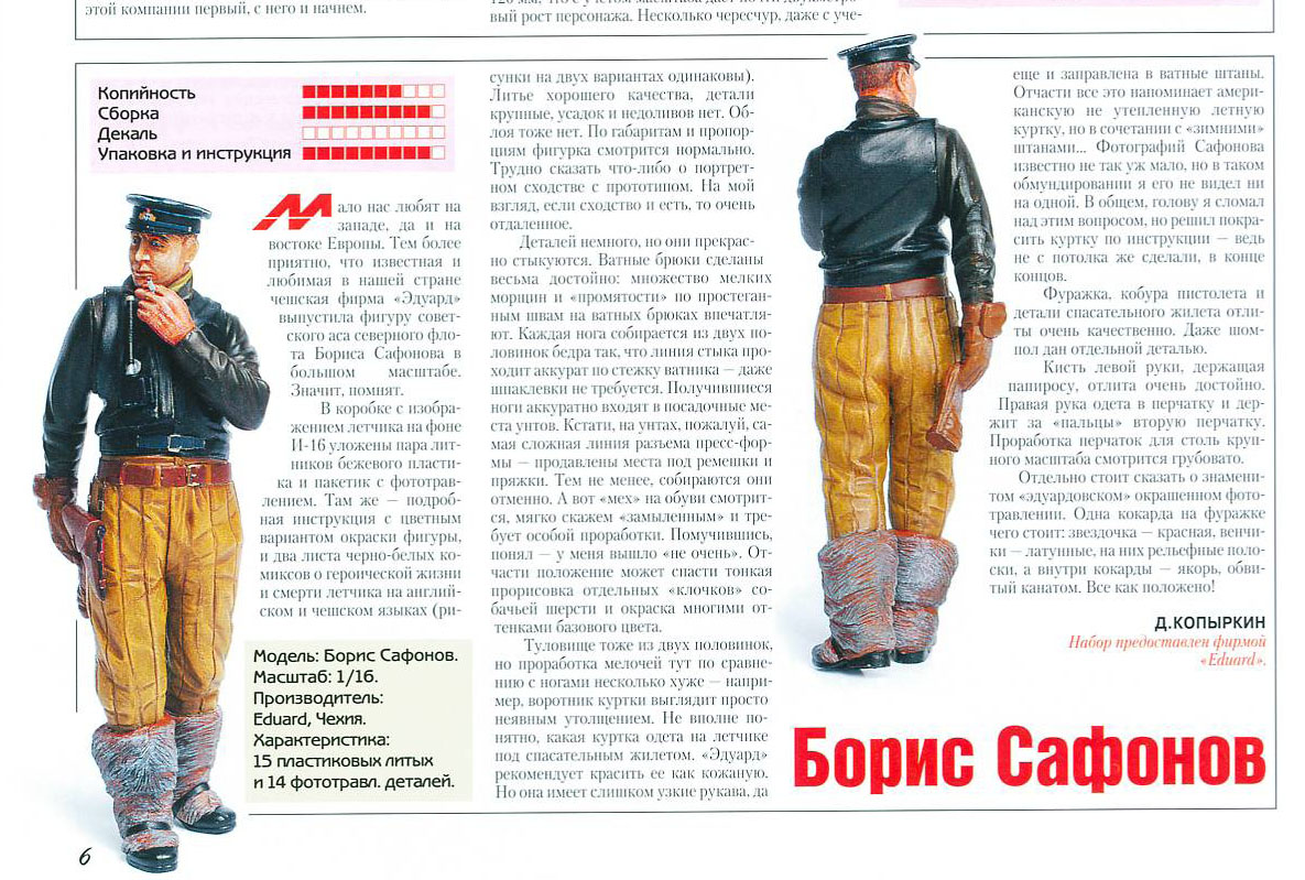 Вот на крайней фотке, я уверен, что это не Сафонов, но похоже, что верхнюю часть они отсюда и взяли. Только у летчика под жилетом телага одета, а они просто свитер оставили. Поэтому, там на детали "какой-то ворот" торчит - спиливай его, он там вообще никчему.