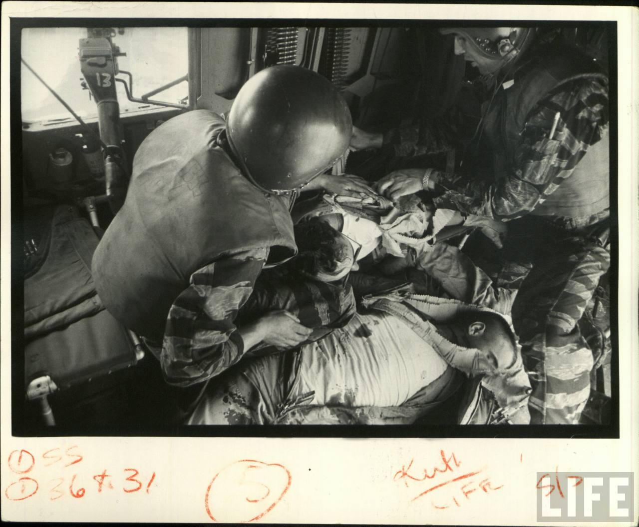 Менелай Wrote: Так он же вне вертолета находится, подбили, кое как машину посадили и текают!Один ранен, второй его на себе тащит, а этот отстреливается прикрывая корешей, залег пострелял, отбежал, присел пострелял, еще отбежал стоя пальнул, потом опять залег, с разложенными сошками поудобнее будет. По шлему, почему так категорично, чего ему в нем по джунглям бегать, с микрофоном у рта, да еще и слышимость нарушается, вьетконговцы ведь вокруг, тут уши нужны. По броникам во вьетнаме не силен, это меня В.Демченко проконсультировал, за что ему Спасибо!