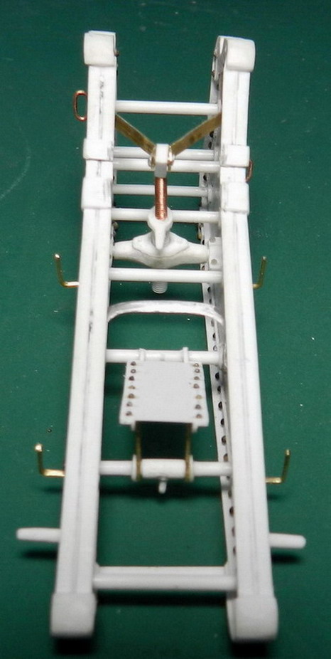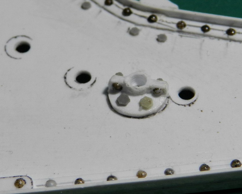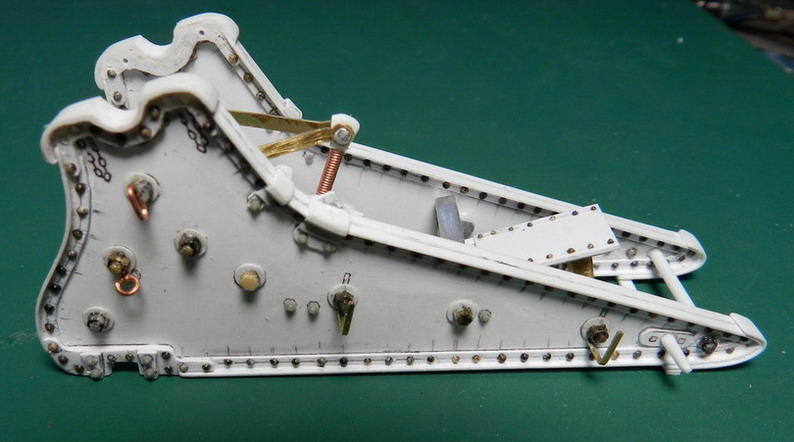 Я же пока продолжу по 6 дм. пушке.Приклеил изнутри накладки для матки подъёмного винта.Сделал поперечные связи из полистиролового прутка, затем подъёмный механизм, подушку для укладки ствола по походному и П-образный кронштейн для площадки между станинами.