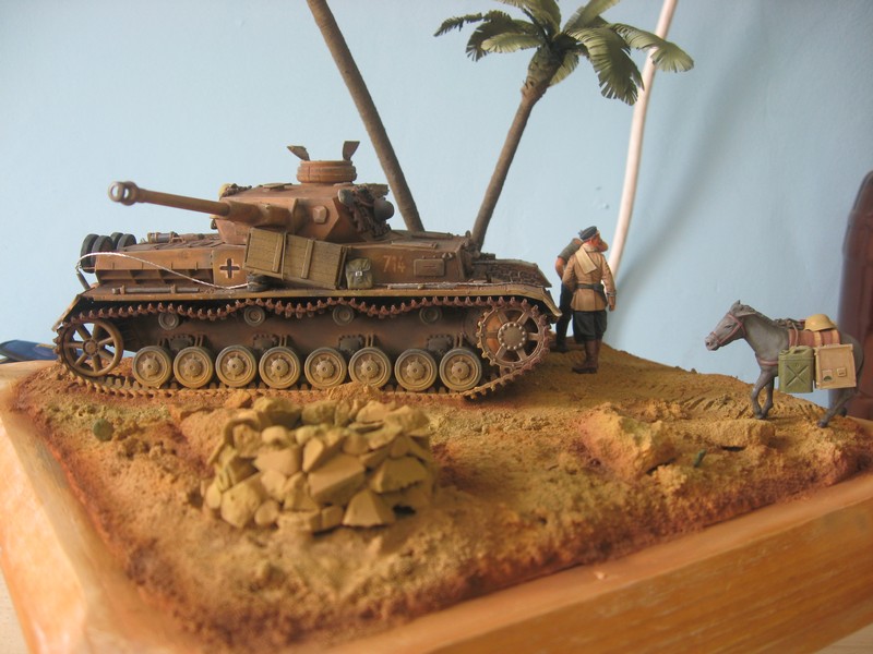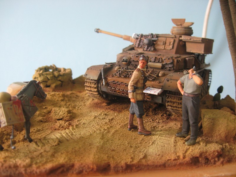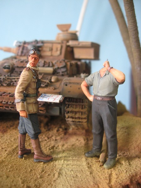 А еще планирую доделать вот эту диорамку. Осталось двух DAKовских танкистов росписать и мелочи набрать.