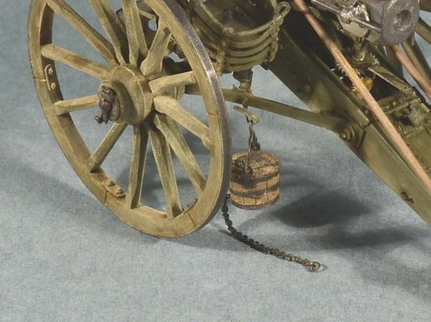 Наконец закончил модель 6 дм. весом в 190 пудов обр.1867 г.Выкладываю сразу всё что делал за прошедшее время. В лобовой части установил боевую ось с крюком для баклаги. Немного вереди от хоботовой части установил поперечную связь со шворневым отверстием и кронштейном для крепления штока компрессора. Изготовил собственно компрессор.