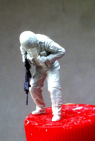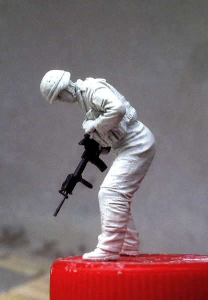 Менелай, на приведенном Вами фото боец не только пригнулся, но и съёжился, голова втянута в плечи. У Вашей фигурки спина прямая, шея вытянута, подбородок приведен и образовался большой зазор между нижним краем каски и воротником, поэтому выглядит как-то не так. Впрочем, кому надо, легко перепилит, в остальном все как всегда - на высшем уровне. С Наступившим и дальнейших успехов в Новом году!