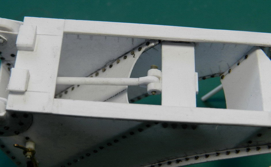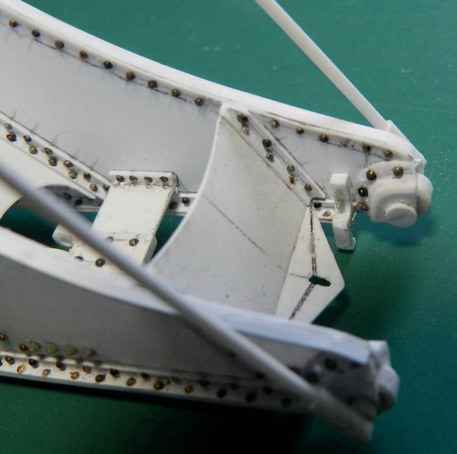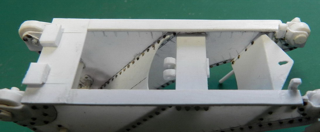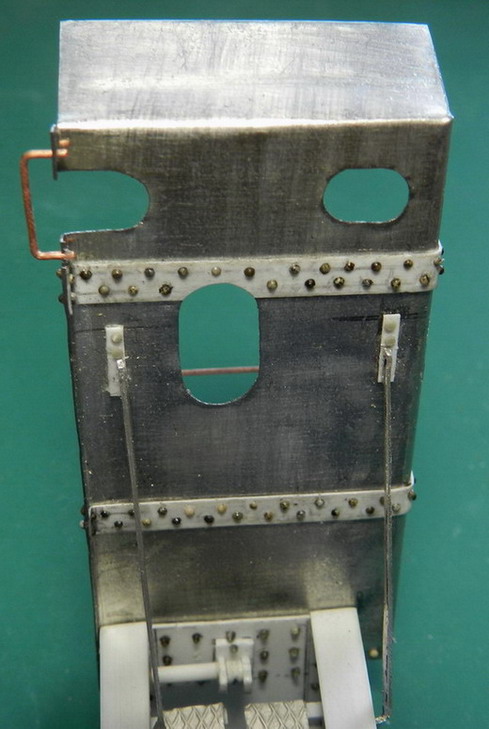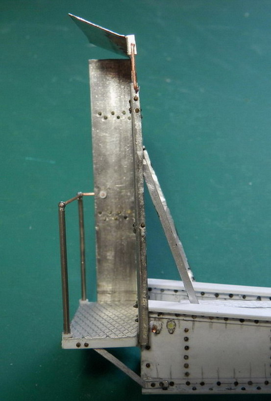 Далее согнул из жести защиту для площадки наводчика. Приклеил по месту и установил оттяжки.