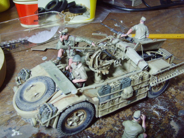 Стройка "Сахарианы" продолжается.Заменил скобы на крыльях и по периметру боевого отделения, тент самодельный, снаряды от Флак 38 "Гриффона". Канистры - правый борт "Танк", левый "Ройалмодел", плюс мелочёвка. Экипаж - Моделвиктория и 5.45. переделанные из немцев.