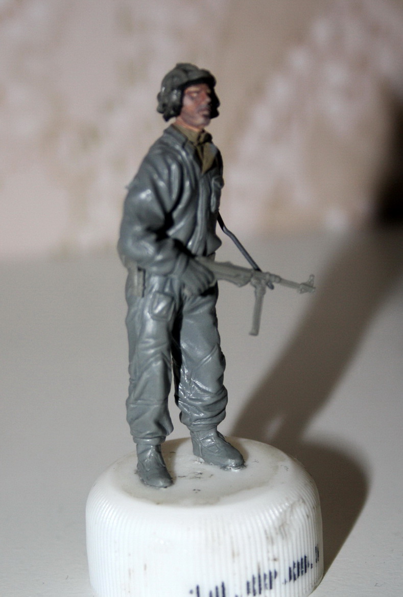 В перерывах работы над Ягдтигром потихоньку леплю. Точнее, учусь. Советский танкист на лето-осень 1941 года. Голова, МП-40, кобура и фляга - ТАНК. Остальное из эпоксилина.