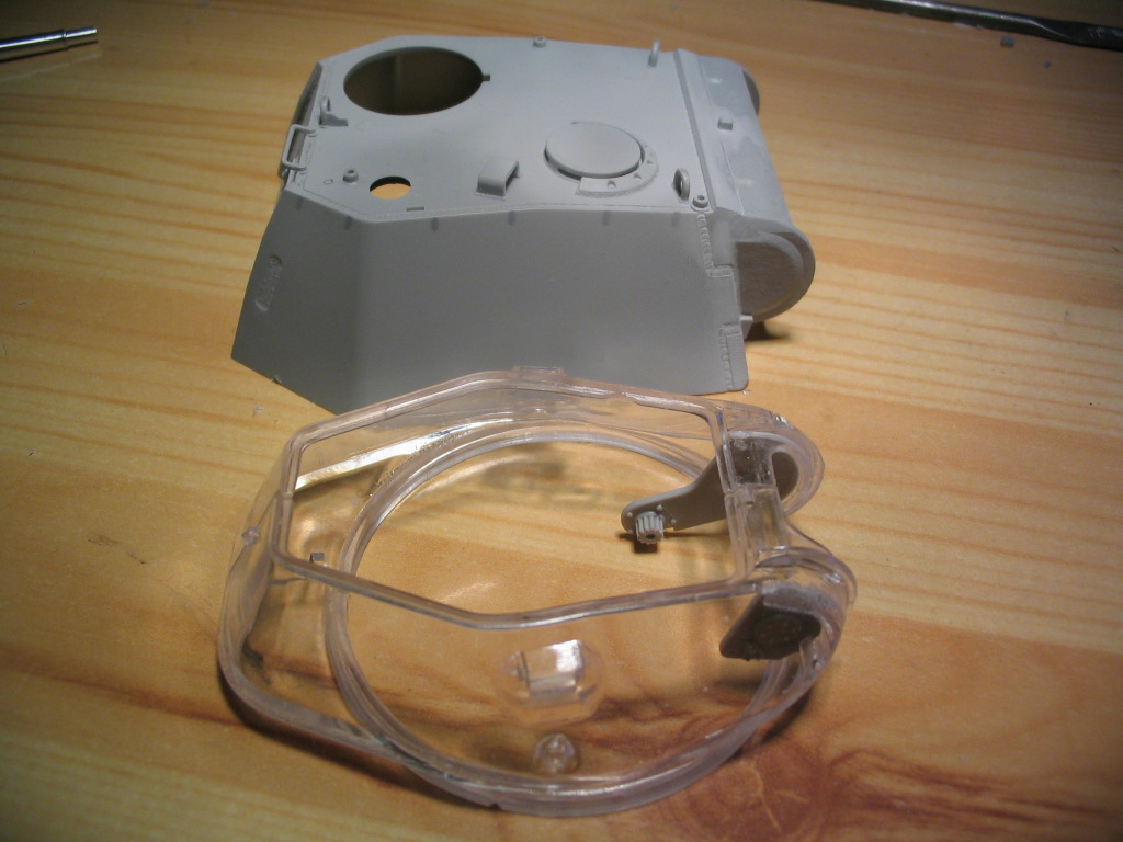 Может быть стоит козырек от дождя над отверстием прицела на маске пушки сделать из травленки или тонкого пластика, на мой взгляд толщина у него не масштабная.