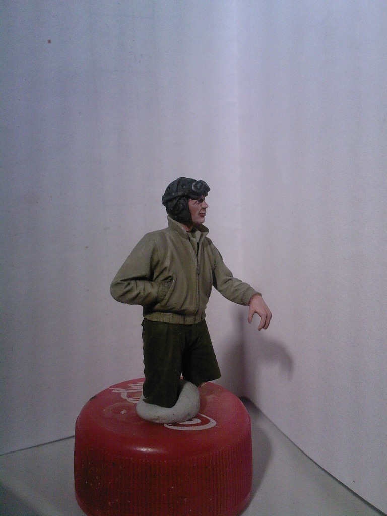 Вчерась ночью намалевал еще одного члена экипажа, фигурка будет по пояс торчать из люка, соответственно красил ее сверху до пояса.