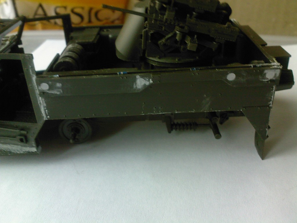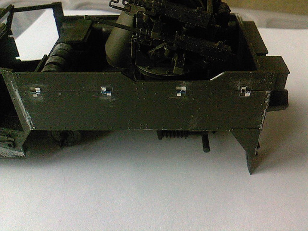 Почти собрал полугусеничное зенитное орудие для этой же диорамки, как приспичило сделать на нем рабочими все откидные борта. Начал воплощать. Пока только левый борт.
