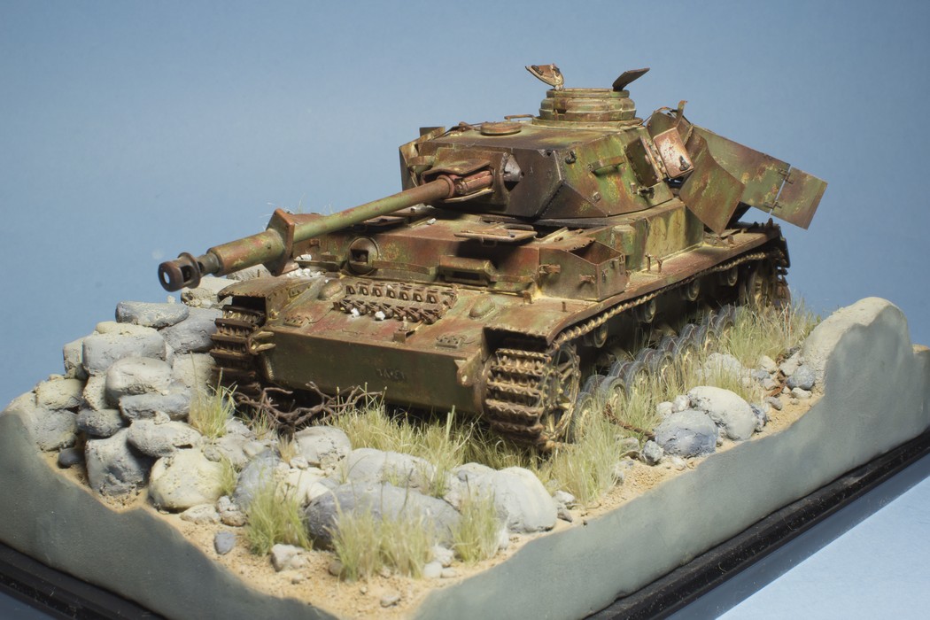 Начал высаживать траву – пока только в передней части. Танк уже прикручен к подставке, но засыпание гусениц и катков песком и камнями еще не начал - можно снять и поправить