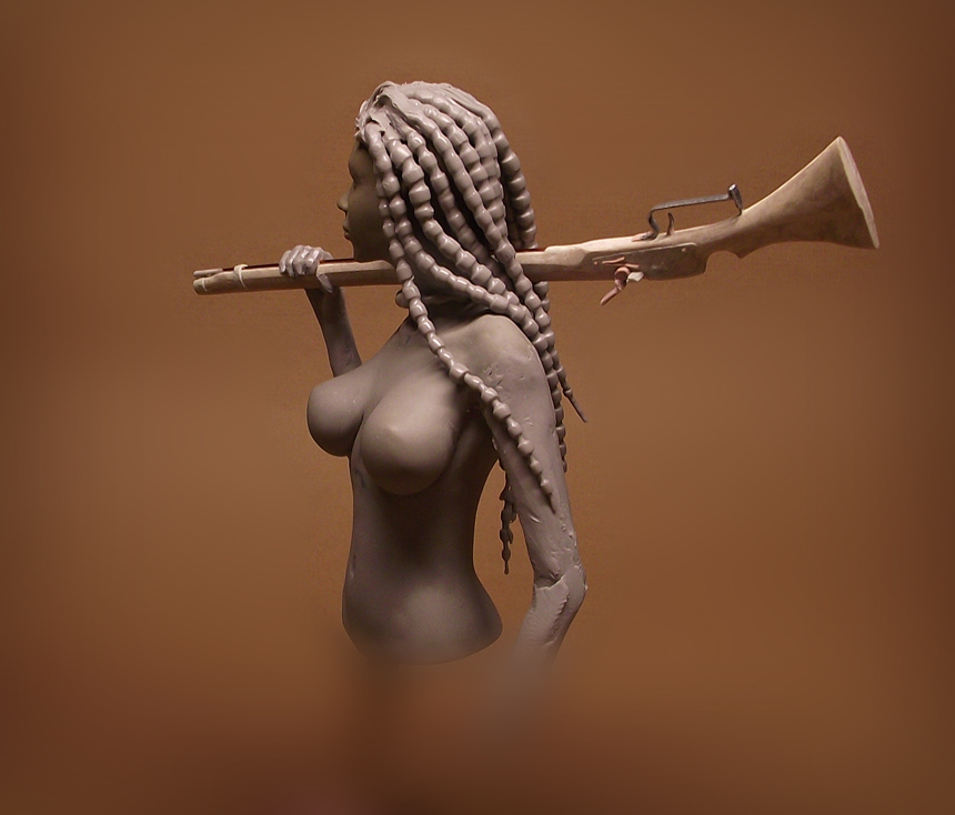 Бюст собран на кусочках пластики, для фотосессии заказчику, отсюда такой эффект, а в итоговом варианте ружье конечно не висит в воздухе. По поводу признаков это да, но это уже в процессе перерешалось.