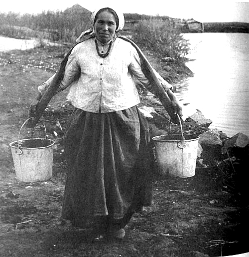 Насколько можно понять из документальных фотографий, в некоторых районах России коромысла были сильно изогнутыми. Но, в этом случае их носили совершенно по-другому - придерживая оба ведра руками.