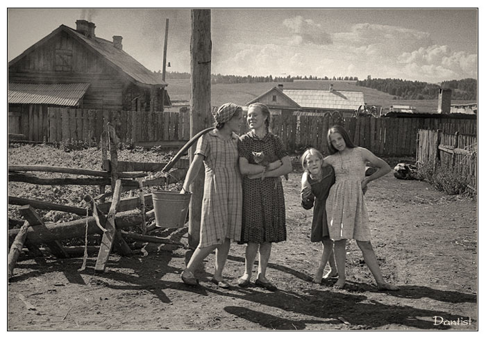 P.S. Есть ли в планах девушки, женщины, бабули в зимнем (тулуп, телогрейка, два платка - характерных для деревни того времени)?