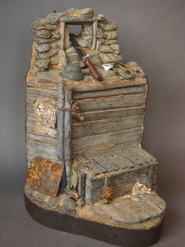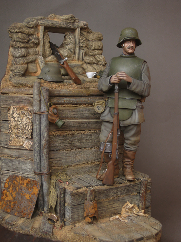 Мда.... Первая (крупная) подставка- сама по себе произведение искуства! Чего стоят детали- плакат, противогазная маска и конечно утренний кофе в холодном окопе