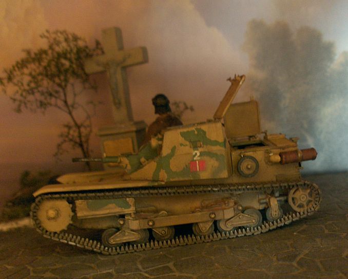 Всеслав, спасибо! Танк абсолютно точно будет распологаться на суше, скорее всего, будет преодолевать небольшую речушку через деревяный "Бастионовский" легкий мост. Думаю пока...