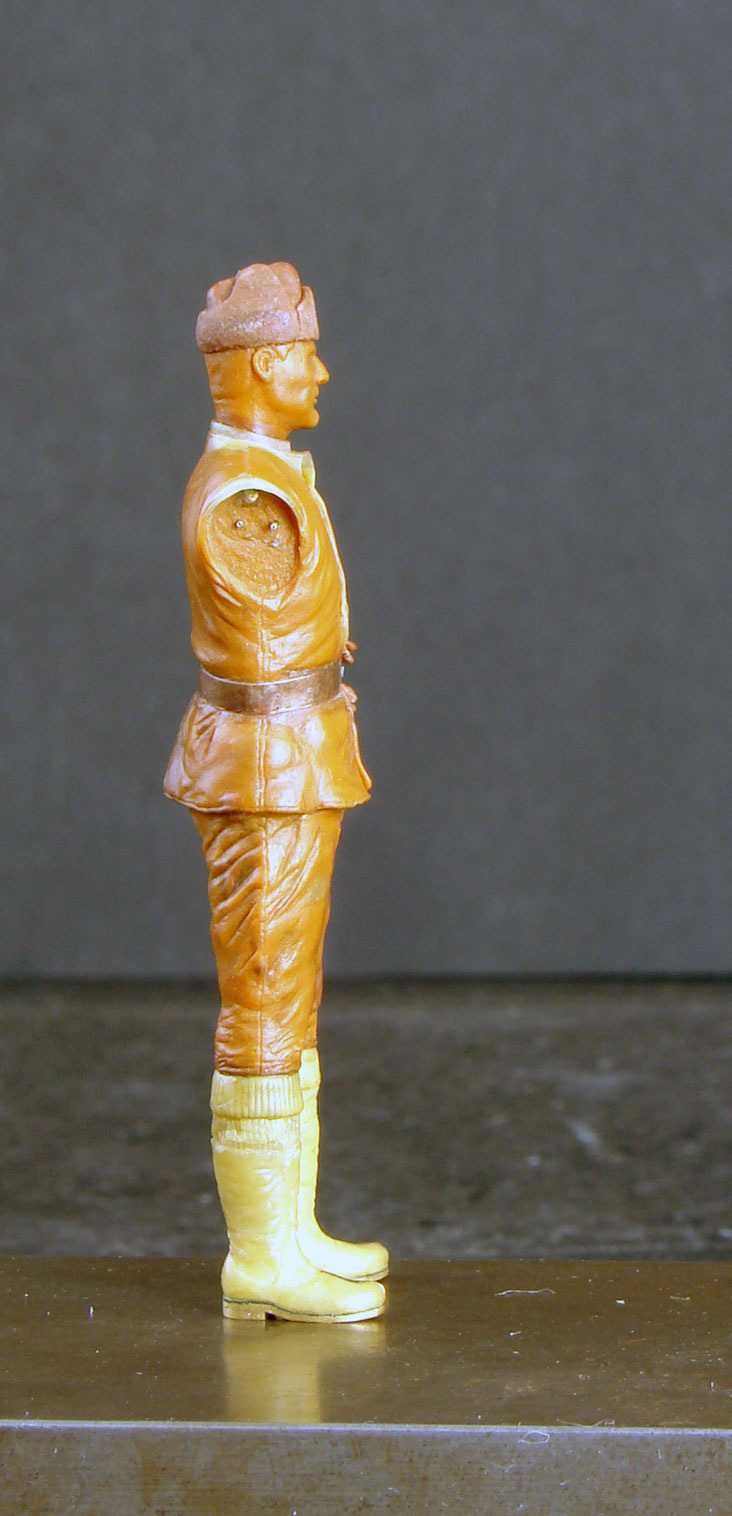 Может я и резковато выразился, но так и есть и я не в коей мере не хочу Вас обидить или как-то поддеть, я хочу дать лишь дельный совет. Поймите, я вижу огромнейший и очень кропотливый труд вложенный в эту фигурку: кобура, пулемет, ремень, сапоги в районе стопы - всё выполненно просто с архитщательным подходом, но сама фигурка, в целом, неисправима.