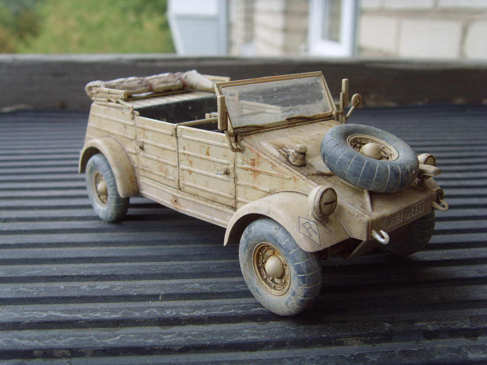 Kubelwagen от Тамии, собран полностью из коробки, заменил только дверные ручки и рассверлил выхлопные трубы.