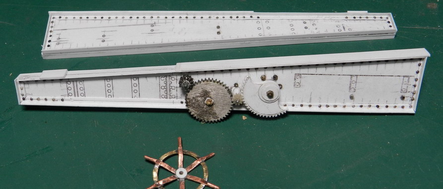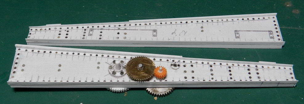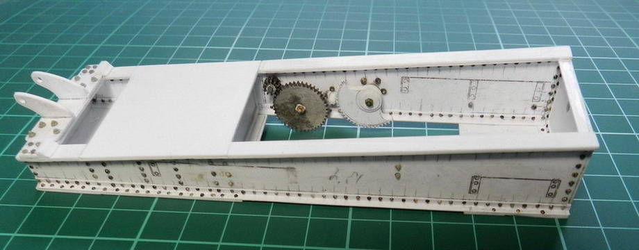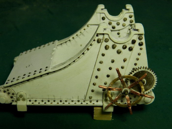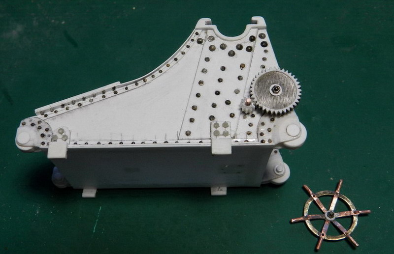 Медленно работа движется. Много других дел отвлекают. Сделал боковины рамы с шестерёнками механизма снарядного крана.