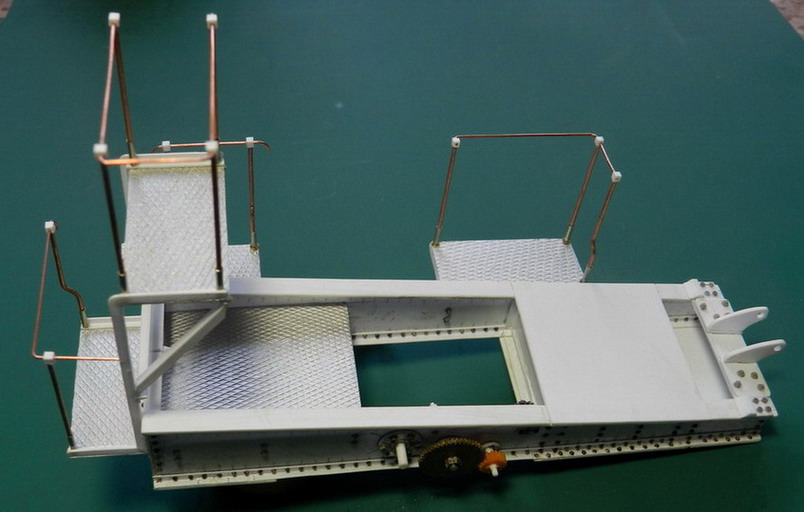 После долгого молчания связанного с крутыми переменами в личной жизни продолжаю работу. На раму орудия установил площадки для расчёта с ограждениями.
