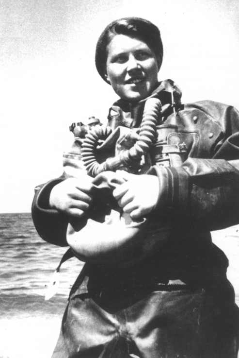 Хм, похоже женщина-водолаз была вовсе не единственная. Такие фото нашел. К сожалению были без пояснений, но в теме фотографий про Сталинград. Значит, из Волжской флотилии, занимались разминированием фарватера и т.п. Встречал упоминание, что было в этой флотилии по крайней мере одно чисто женское подразделение (в смысле команда корабля).