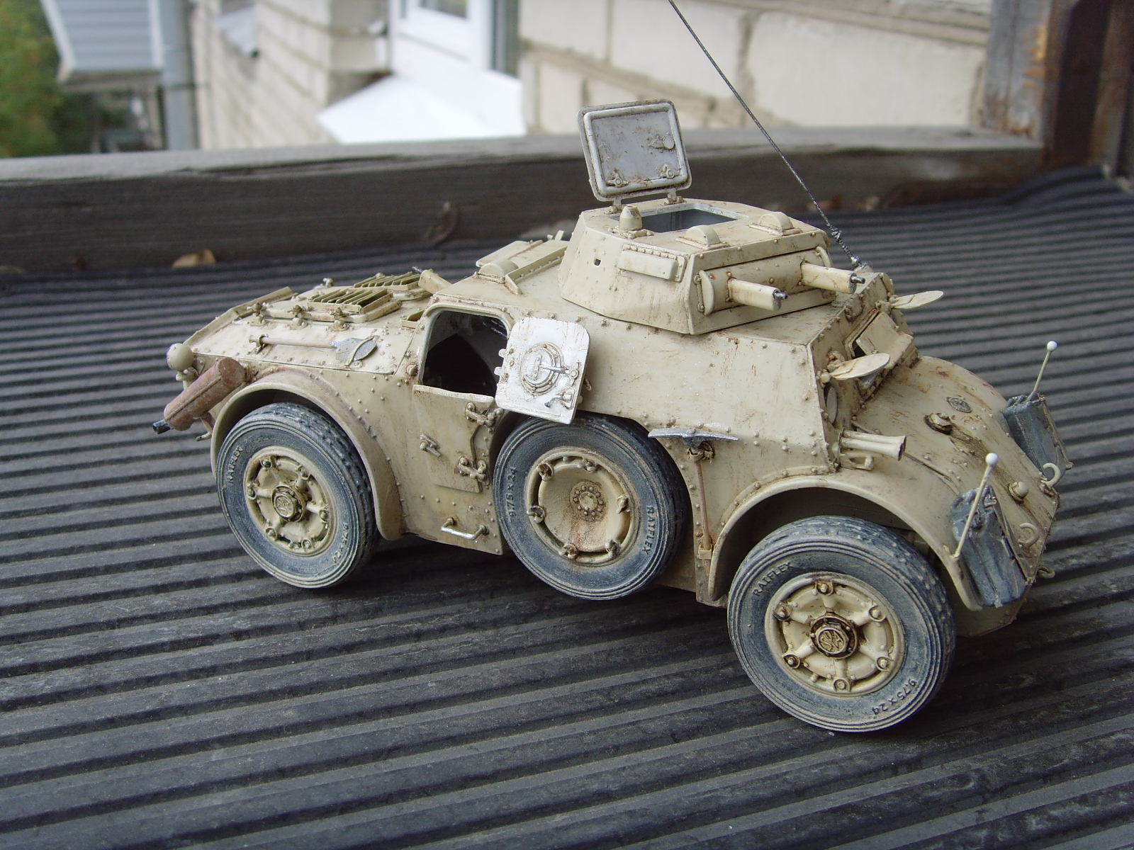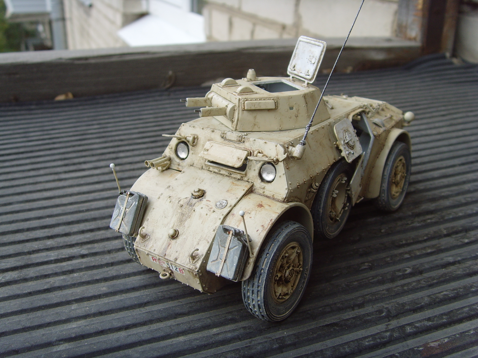 Наш ответ противным англичанам: AB 40, Ливия 1940-41, модель от Итала.Подверглась следующим доработкам - стволы пулемётов- иглы от шприцев, антенна - медная проволока, канистры - "Танк", фары - "Эльф","жабры воздухозаборников и решётка выхода воздуха - травло от "Вояджера", также как и "метёлка" антенны, колёса - "Гусар". Окрашивалась осветлённым "Аканом", "Тамией" и "Валехо", запыление и тонировка - масло на "Тиккурилле".Так как люки открыты, то пришлось изготовить и немного интерьера. Позже будет и экипаж.