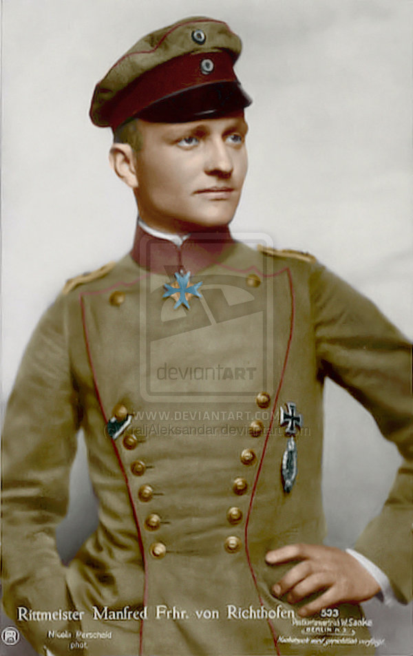 Воздушные силы Рейхсвера формировались из волонтёров различных родов войск. Мундиры молодого Геринга и Удета -похожи потому что они пришли в авиацию из пехоты, а вот Красный барон из кавалерии. Об этом говорит и крой его мундира с двумя рядами пуговиц. И вот как раз в кавалерии (у улан) и были красные воротники.