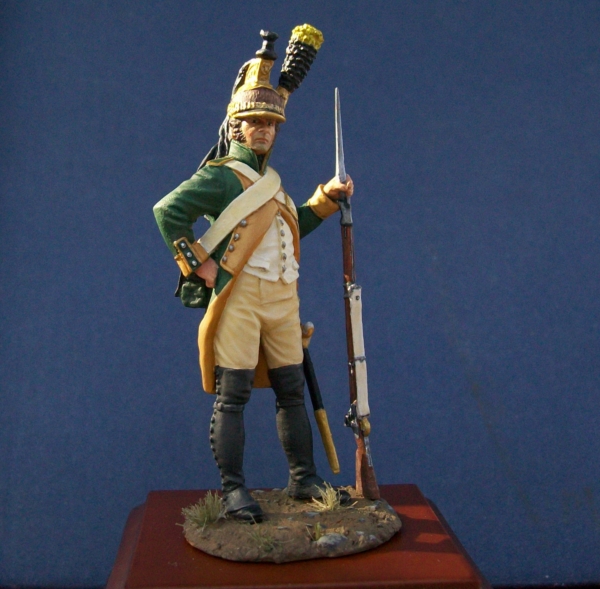 Пеший драгун 23-го полка на 1805 год. Это максимум, что может выжать мой фотоаппарат (к сожалению замыливает фигурку).