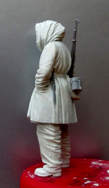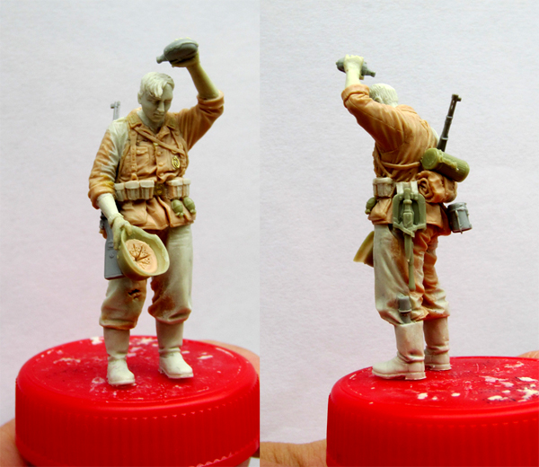 Переделки понравились - фигурка пропорциональней стала, да и вцелом поживее. Сергей, а почему флягу дрэгоновскую не подправили - очень уж бросается она в глаза. Членение фигуры останется прежним? в предыдущем варианте возникали определенные сложности, связанные с тем, что правое плечо и голова были отлиты единой деталью с туловищем.