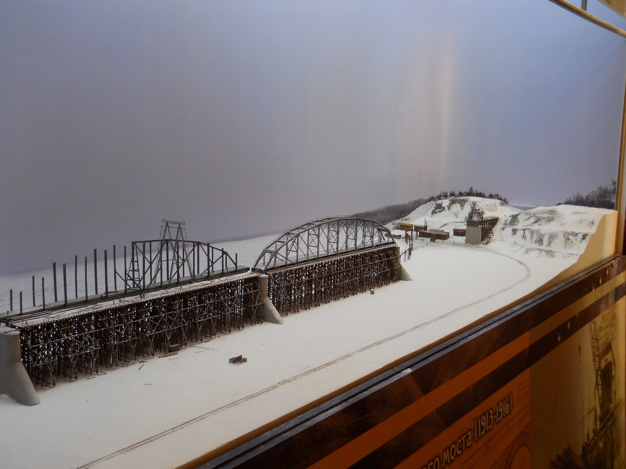 Сегодня перед монтажом стекла сфотографировал макет, над котором работал в последнее время.Точнее один из двух.успел сделать 3 кадра и сдох аккумулятор..Теперь получится снять только через стекло.Коротко про макет - строительство Амурского железнодорожного моста в начале 20 века,правый "Хабаровский устой".Масштаб -1/200.Другие фото я уже светил в теме обсуждения темы про "Бисмарка"- там такой же масштаб и фигурки в 200 масштабе.А теперь процесс подошел к завершению.Потом, если получится, досниму первый макет с Благовещенским устоем.