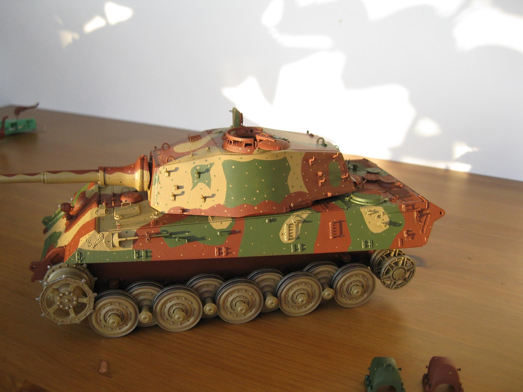 PROHOR, классный Кинг получается. По матчасти посмотрите следующие моменты: так как это один из самых поздних тигров - на люках мехвода и стрелка изменились запорные устройства (при закрытх это видно по количеству отверстий - стало всего два) на заднем башенном люке приваривались симметрично два кольца неизвестного мне назначения (есть фото), при таком ракурсе выложенных фото не видно стопоров люка моторного отсека, а также стопора люка в открытом положении они есть? Видно проведена большая работа по доработке, "добить" уж до конца.