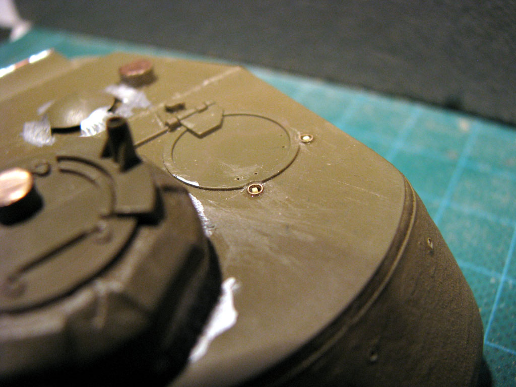 По фотографиям реальной машины было выяснено, что отверстие прицела в маске орудия ощутимо меньше реального в диаметре поэтому оно было рассверлено.