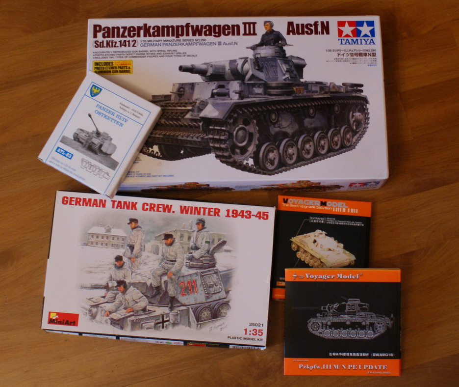 решил начать делать давно задуманную виньетку посвященную боям за Харьков зимы 1943 года. Основной объект – тройка N от Тамии, доработать которую собираюсь наборами травленки от Вояджер и зимними траками от Фриул. Экипажем должны стать зимние танкисты от МиниАрта, часть из них думаю перевести в пехоту. В уме держу обещанных в этом году МиниАртом немецких гренадеров на 43 год.