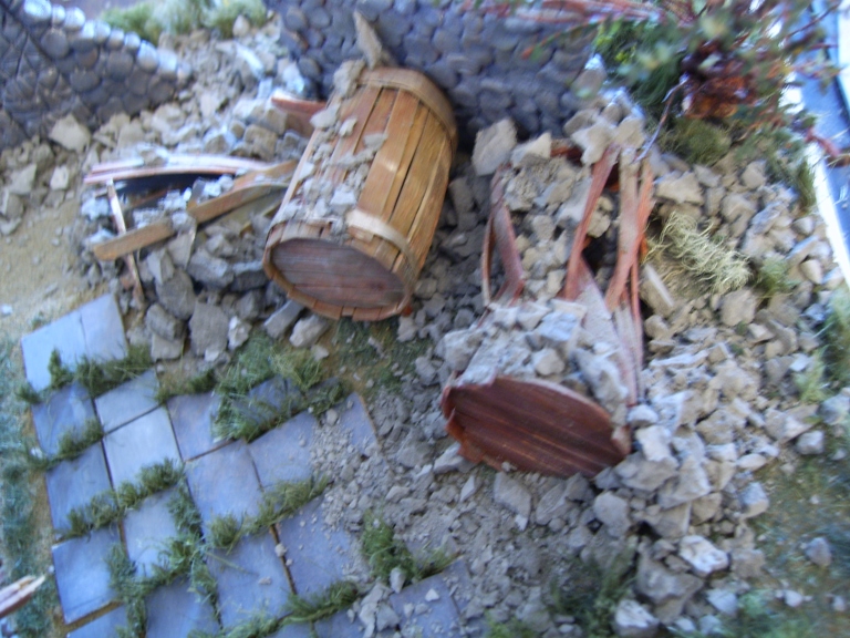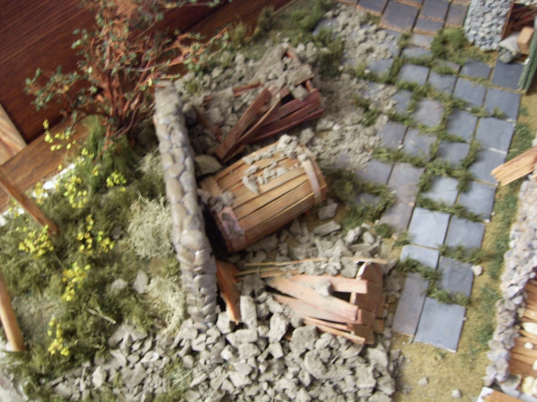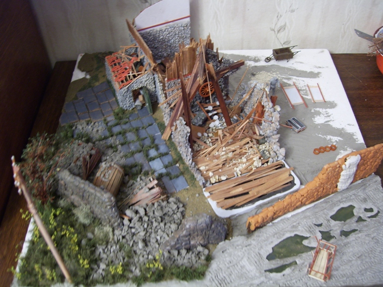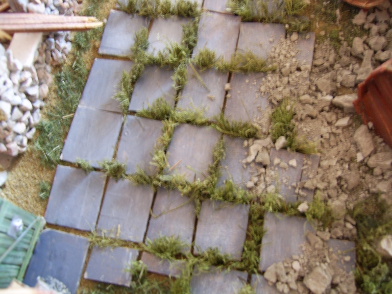 ключ, это не пенопласт, а пока неокрашенные куски каменной кладки. насчет зелени. да темноватая и видимо ее буду осветлять тамиевской Buff.