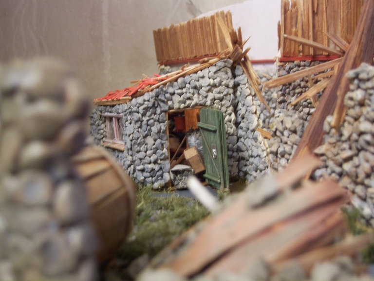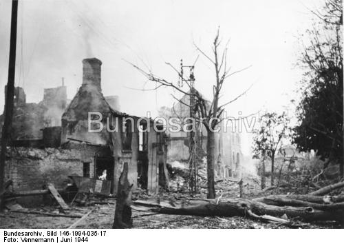 Июнь 1944г. союзники массированными бомбежками превратили оперативные тылы в крошево из камня и бетона. Немецкие подразделения цепляются за все что есть, превращая каждую нормандскую деревеньку в опорные пункты обороны. Эпизод из этого противостояния я и хочу отобразить в своей работе.