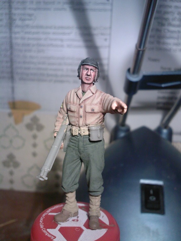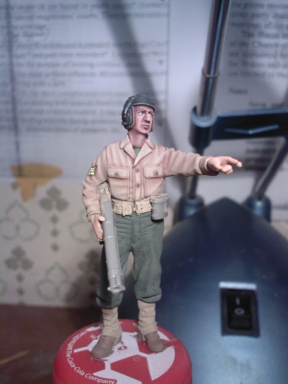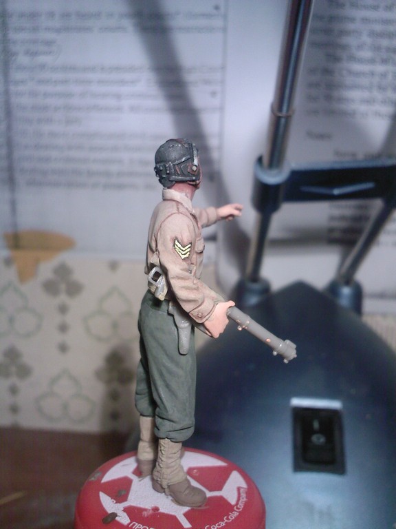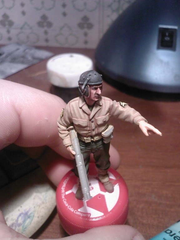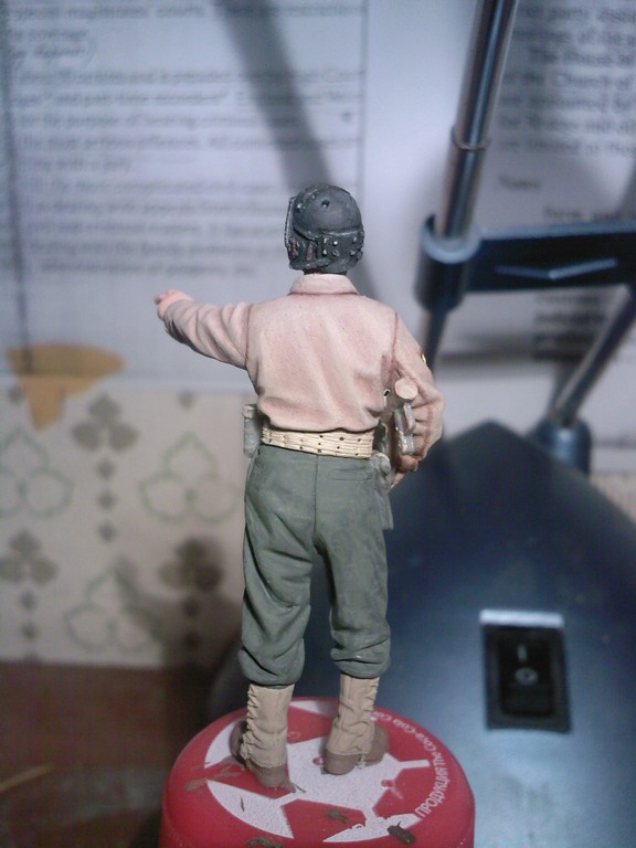 Пусть никому не интересно, но я продолжаю! сегодня довел тонировку верхней части фигурки. Остались только пуговицы на кителе и тени в районе базуки и ремня. Сильно сказывается на аккуратности длительная работа в 16-ом масштабе, но по немногу втягиваюсь.