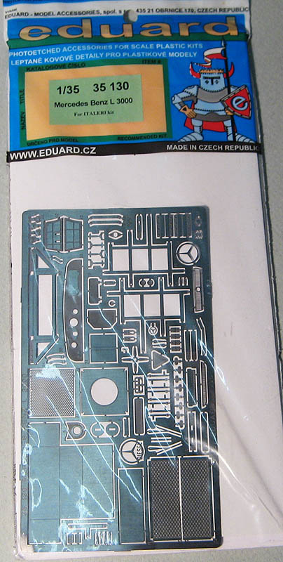 В работе решил использовать травленку для италовского мерса 3000. Большинство деталей конечно не подойдут, но дворники, ящички, педали, а главное звезда на радиаторе и надпись DIESEL на капоте вполне подойдут.