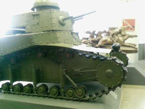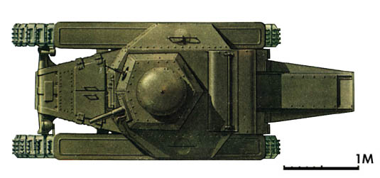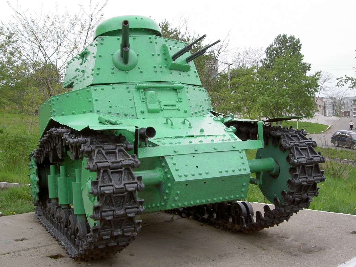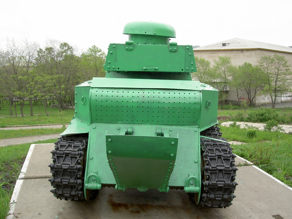 Думаю, историю этого танка желающие легко найдут в сети. Так что повторять ее не буду. Скажу только, что было как минимум три версии машины с разным вооружением, ходовой и башнями. Третья - модернизация середины 30-х, с 45 мм пушкой, в таком виде несколько (десятков?) машин даже повоевали летом 1941. А по размерам, (без хвоста), танк ростом с выского мужчину и габаритами меньше японской малолитражки.