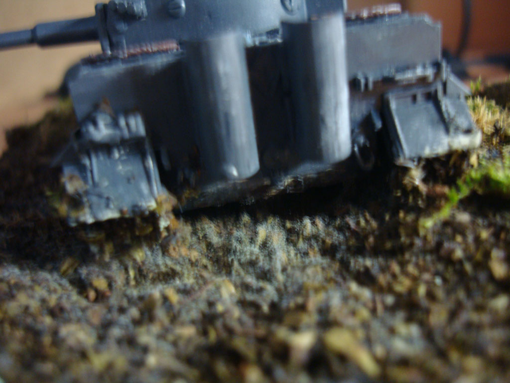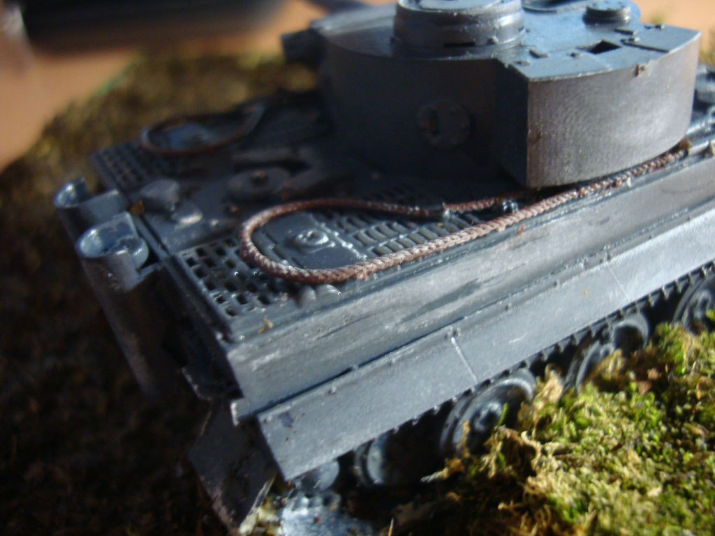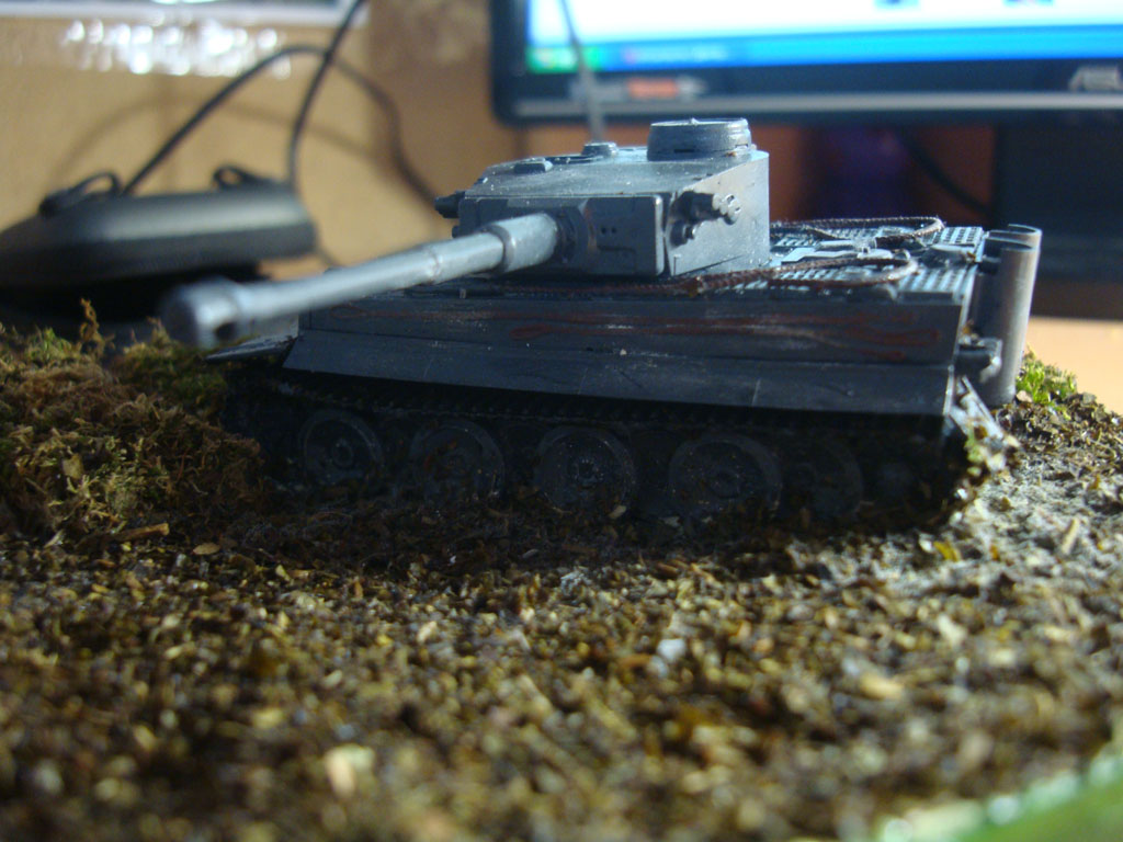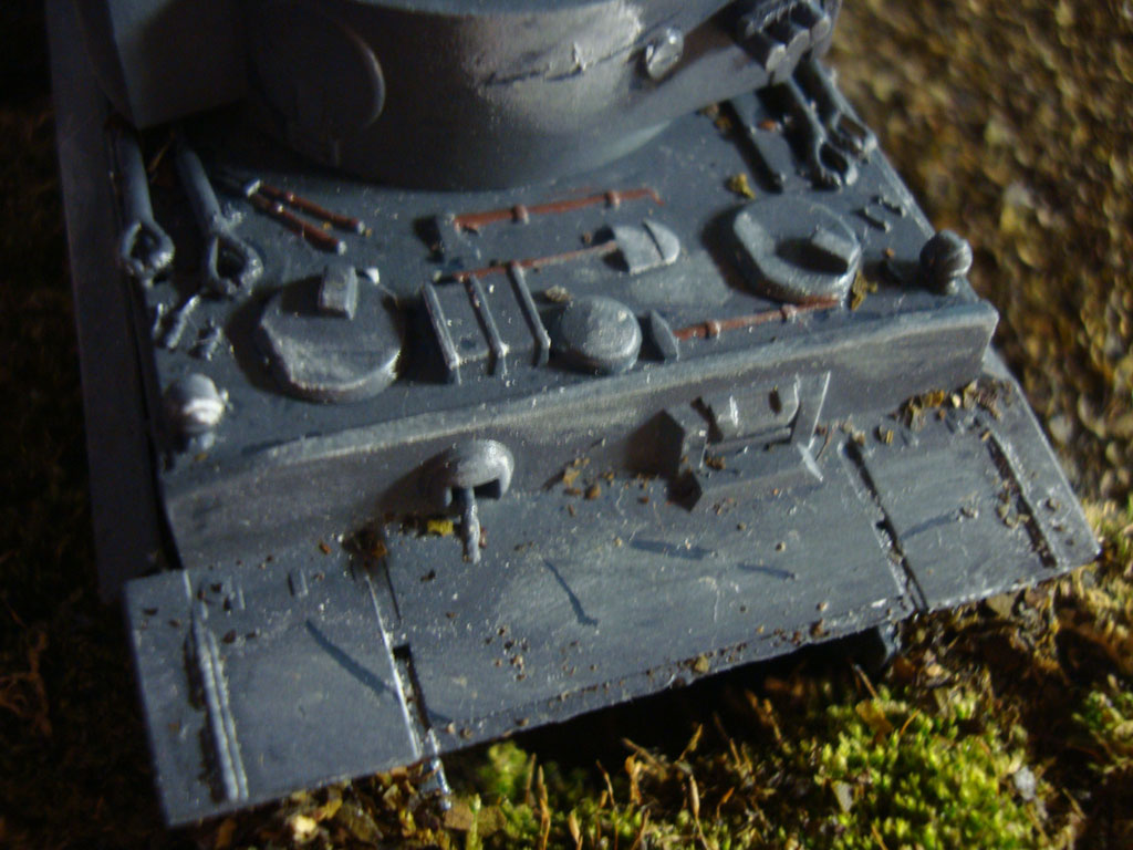 Что-то я смывки, драйбраш и т.д. не увидел, прям кольнуло. На фото №3 показаны две большие выхлопные трубы - глушители, но на них нету ржавчины, масла и грязи, а у Тигров выхлопы очень сильно накалялись и покрывались ржавчиной и тому подобным, моэно было сделать сколы на башне, имитировать потеки масла и топлива в моторном отсеке.