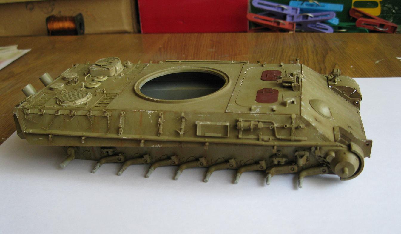 Никита ДОБРЫНИЧ, копоть от снарядов появляется весьма незначительно при попадании в броню кумулятивных и осколочно-фугасных снарядов, поэтому следует несколько уменьшить имитацию пятна копоти. Ну и лично моё мнение: коль уж драгоновскую Пантеру собирать, то не помешал хотя бы интерьер башни, а то наряду с прекрасно проработанным внешним видом, точностью соответствия чертежам и проработанной по максимальной возможности литья для этого масштаба мелочёвкой ещё и добавляется скучная пустота башни, не говоря уже о корпусе. Наверняка инженеры-проектировщики фирмы Dragon, изготавливая столь подробно торсионно-балансирую подвеску Пантеры и курсовой пулемёт, предусматривали установку интерьера моделистами. Я бы добавил ещё интерьер к Пантере, разумеется, не склеивая потом весь корпус и башню, чтобы потом было видно только 20-25% интерьера, а рационально продумав места разъёма корпуса с последующим выбором максимальной живучести и оптимальной конструкции скрепляющих узлов. Не смею вас упрекать или обидеть, это моё личное мнение.