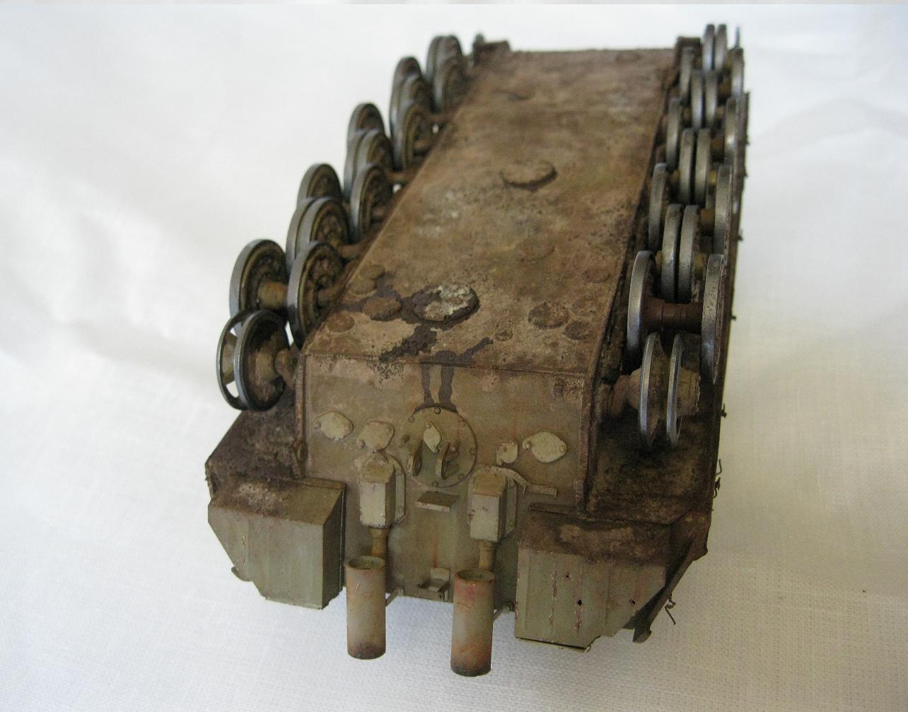 Ну и наконец, вы писали, что затрудняетесь в определении предназначения люков на крышке двигательного отсека. При взгляде на корму танка левый люк служит для заливки воды в систему охлаждения, правый люк для доступа к горловине топливных баков, поэтому дальше решать вам, как скорректировать пятна топлива.