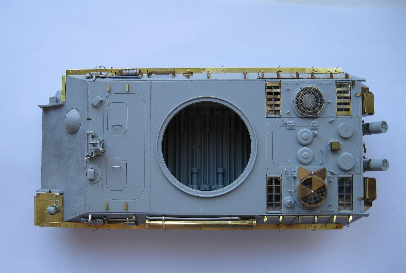 А что тут пободробней Антон, тёмныи лес короче. Jentz в своем последнем Panzer Tracts начертил крышy отделения управления вместе с люками пунктиром. Что по всей видимости означает что точно он не знает. Вторая непонятка бронеколпак над вентиляционным отверстием отделения управления. Третья, собственно надмоторная плита, о чём я упомянул в своеи статье.