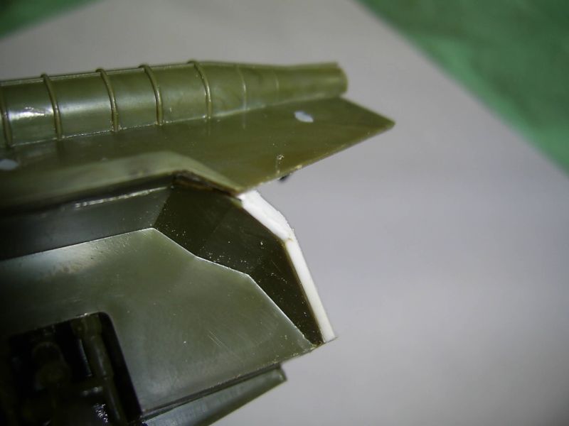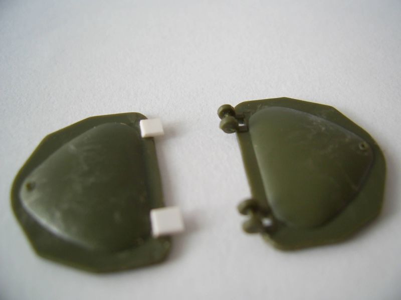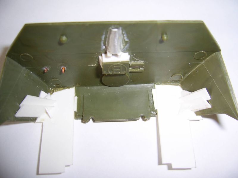 Для начала срезал петлт крышек люков. Снизу подклеил кусочки литника и все зашпаклевал.