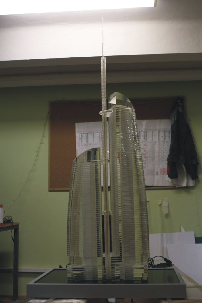 и еще парочка, башня федерации полностью из орг стекла. общий вес макета 124 кг. полировка вся ручная, верхние части вырезались напильниками, при с сравнение с чертежами штанг ель циркулем его можно засунуть куда нит подальше, так как даже с ним дое........я не до чего!