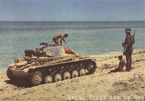 Эрик,Северная Африка славится коврами и гобеленами. Почему бы не предположить, что танкисты сушат сувенир? Запылился, простирнули в море, теперь сушат.Не факт, конечно, но почему бы и нет?