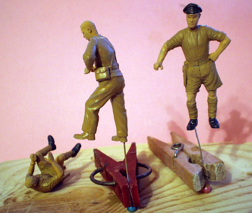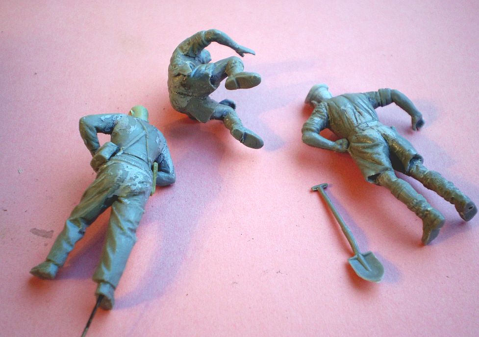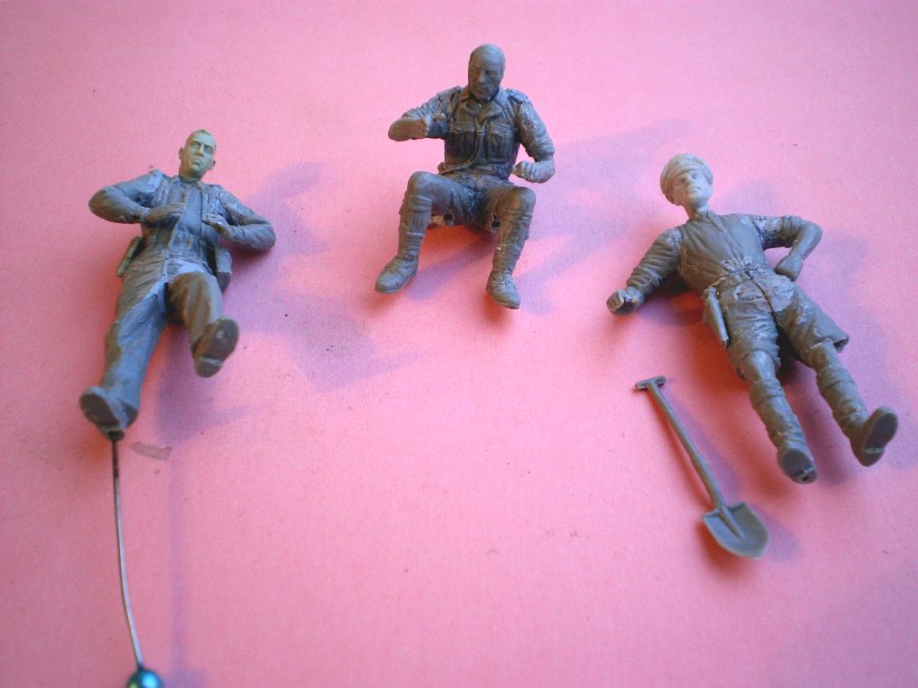 Пока сохнет эмаль (пусть доолго сохнет, пусть, лучше высохнет), я занялся фигурками. Наземные поисковики/охранители аэродромов/противодиверсанты авиасил - РАФ. На фото они одеты почти как прочие британцы, но все же со своими приметами.