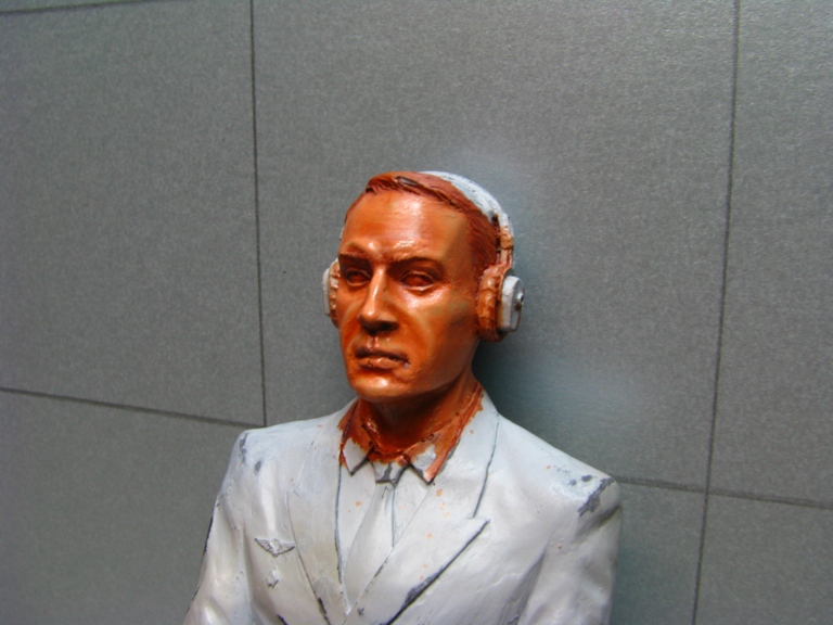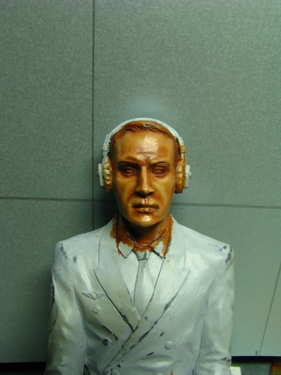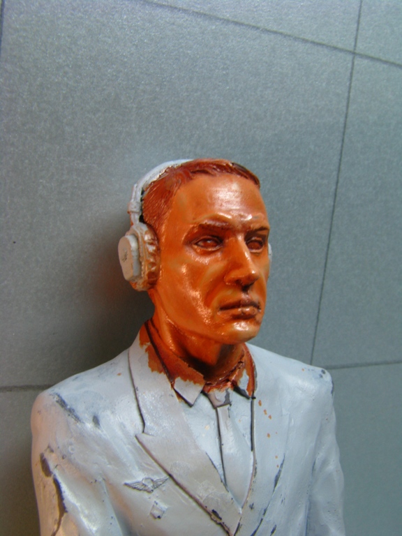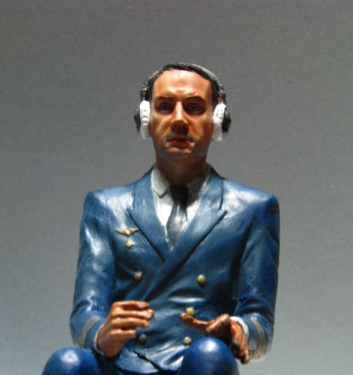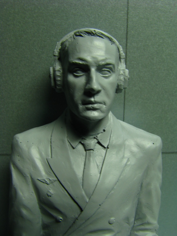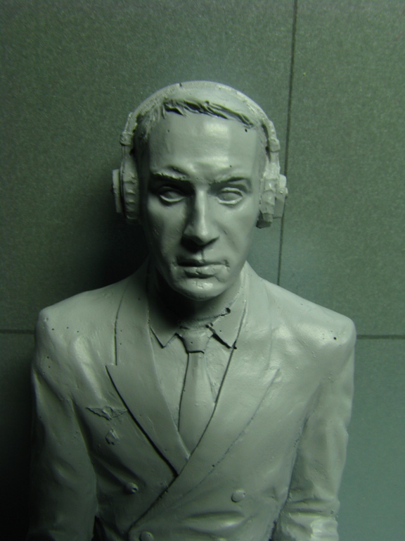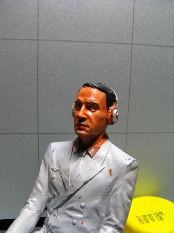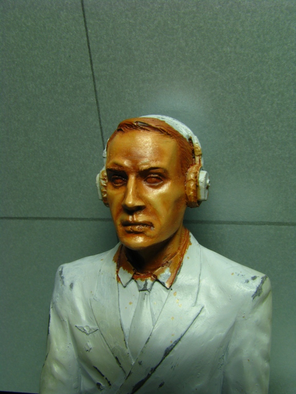 итак, нанесена тамиевская грунтовка. что не было видно на черновую вышло перед этапом окраски. буду убирать каверны на самых неприятных местах. брови,скулы, воротник, галстук. из позитивного - все-таки скульптурная часть хорошая, ее не смогла убить даже отливка. очень даже симпатичный пилот гражданской авиации.